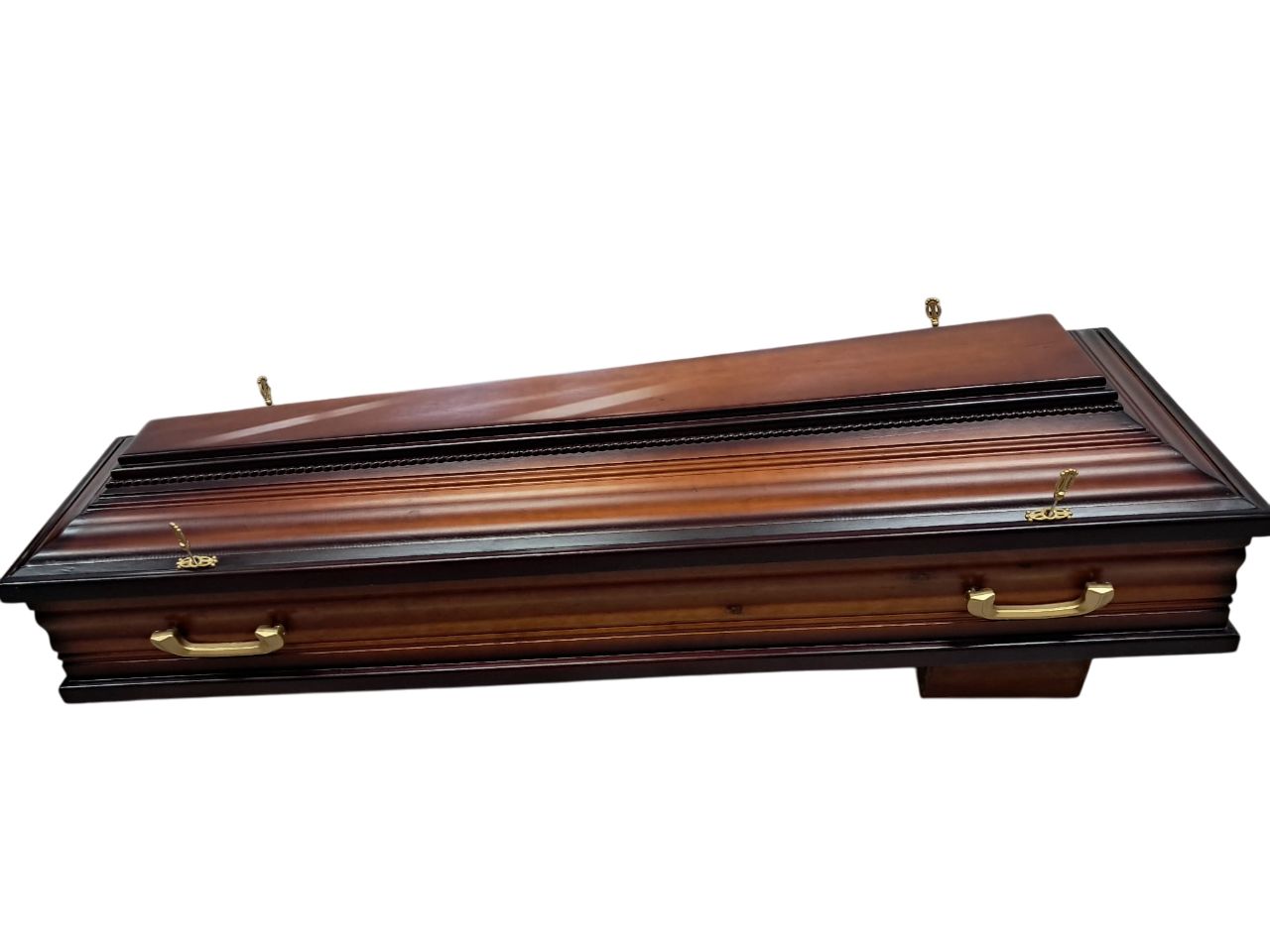 Priedes koka zārks ar dekoratīviem elementiem, rokturiem un dekoratīvām skrūvēm vāka nostiprināšanai.