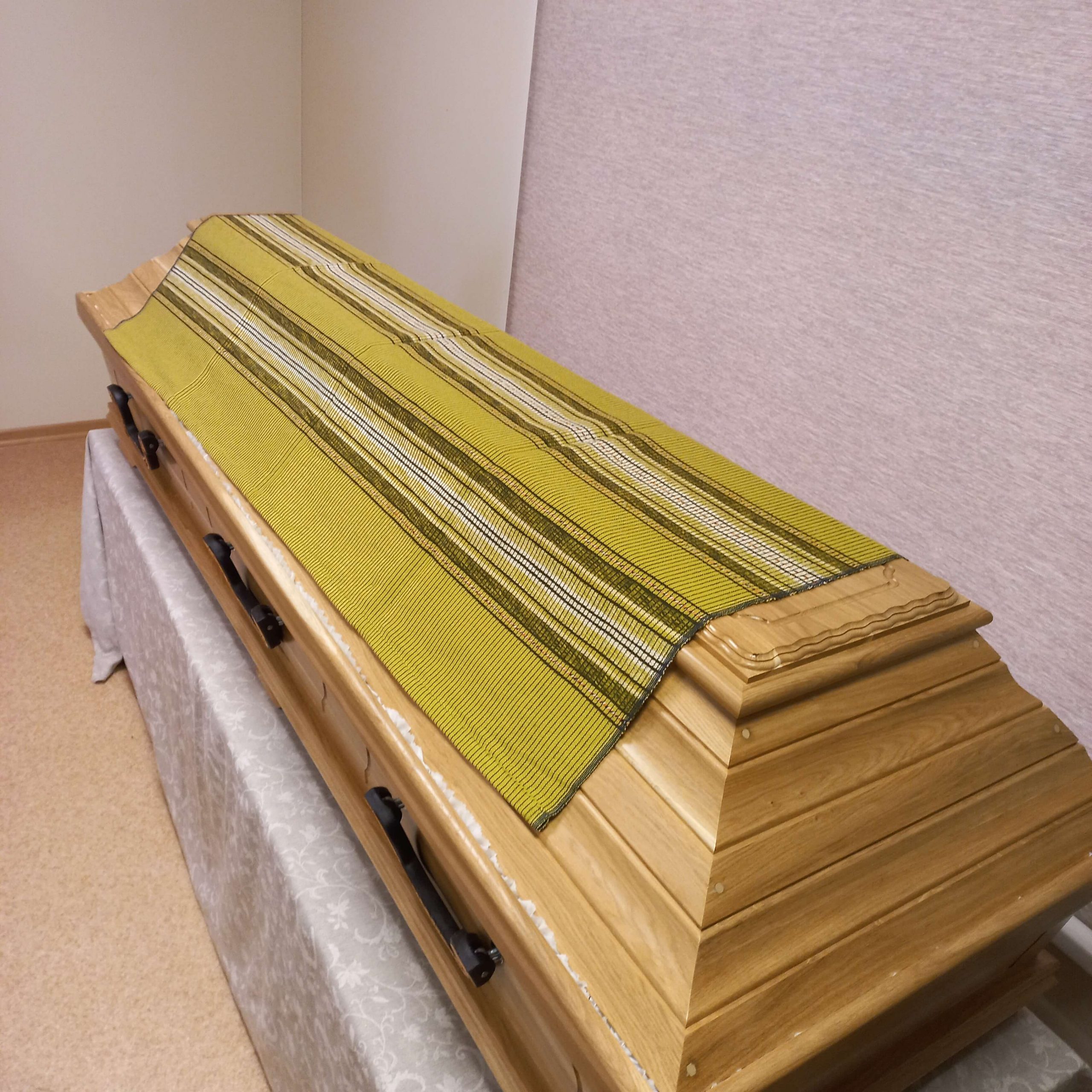 Tautiskas zārka segas . Ražotas Latvijā. Sastāvs: 80% vilna, 20% kokvilna.