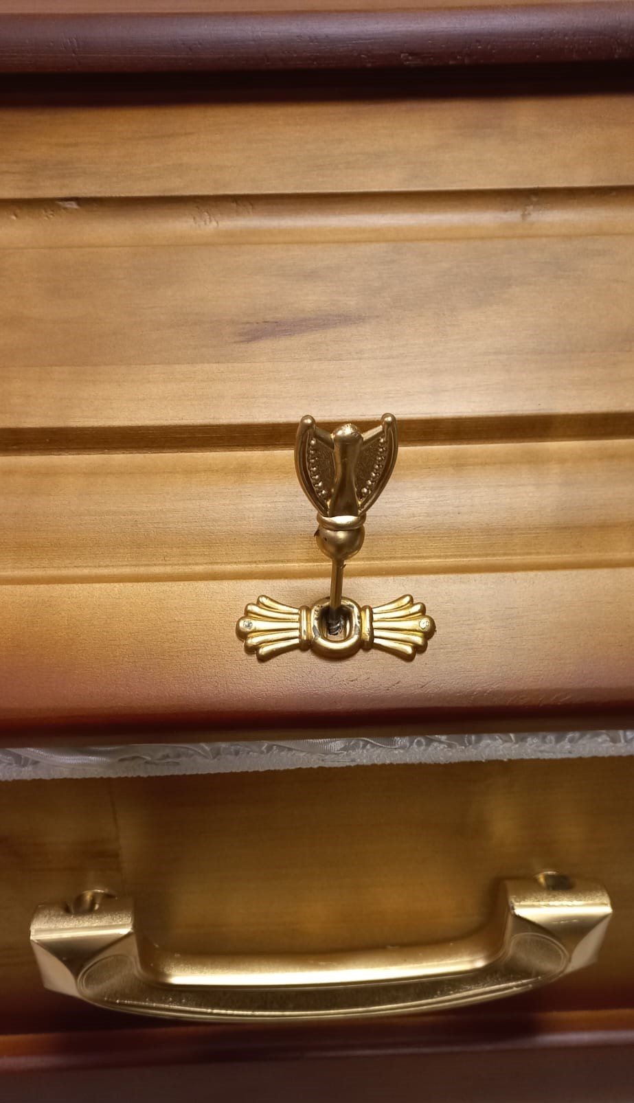 Priedes koka zārks ar zelta krāsas rokturiem. Dedzināts, lakots. [/trx_infobox]